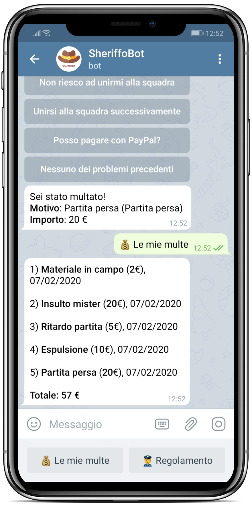 Ogni giocatore può conoscere le proprie multe in ogni momento